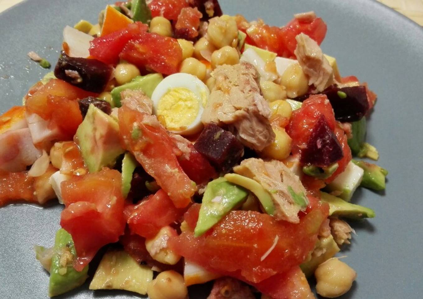 Ensalada de garbanzos, tomate y aguacate